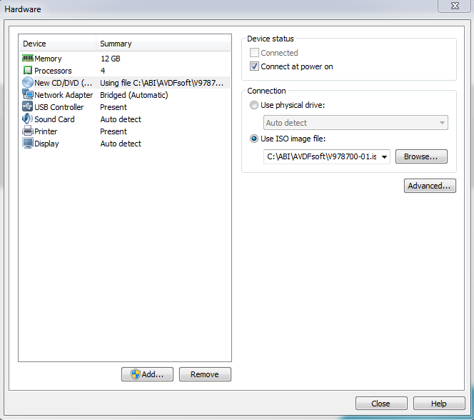 3.7 Browse to insert media .iso file (V978700-01.iso)