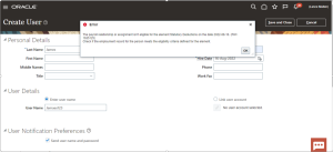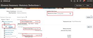 While create Manage Users to hire a new employee the following error occurs “the payroll relationship or assignment isn’t eligible for the element Statutory Deductions on the date YYYY-MM-DD” (PAY-1635125) Check if the employment record for the person meets the eligibility criteria defined for the element.