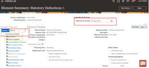 Select “Element Eligibility” on the left hand side and click on Actions drop down and click on create element eligibility. Please make sure the effective as-of date is correct.