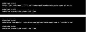 TXK Delta 13(32392507) plus critical TXK patches 33550674, 33535778 failed because of missing files adsign.txt and adkeystore.dat under $APPL_TOP_NE/ad/admin
