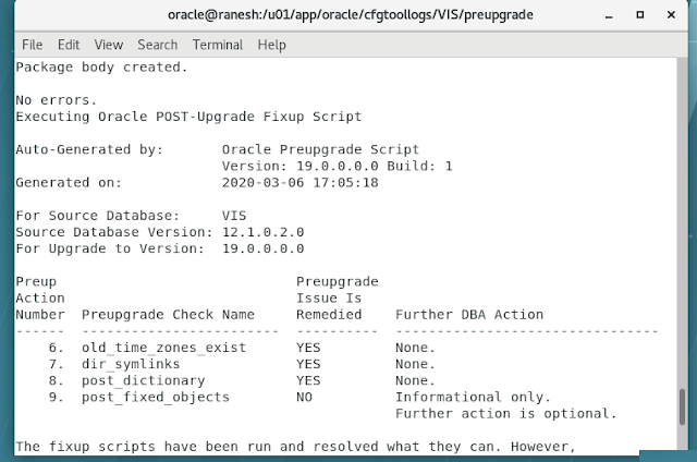 cd /u01/app/oracle/cfgtoollogs/VIS/preupgrade@postupgrade_fixup.sql