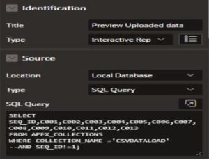 - Create the Classic report region to display the uploaded data and required buttons i.e