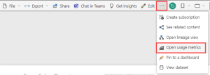 Or open the report, then on the command bar, select More options (…) > Open usage metrics.