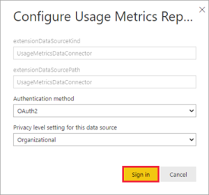 3. In the Configure Usage Metrics Report dialog box, select Sign in.