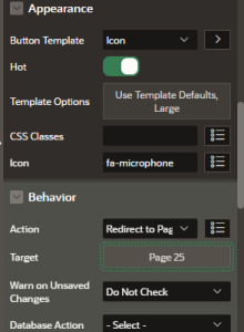 create dynamic actions with “Execute JavaScript Code” for the record and stop buttons, follow the steps below: