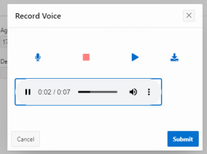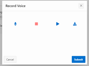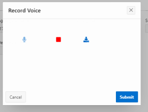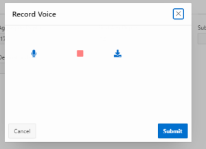 When we click the voice recording button, it will redirect to the voice recording modal dialog page.