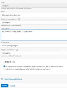 At least one Compute scan recipe must be in the tenancy before creating a target.
